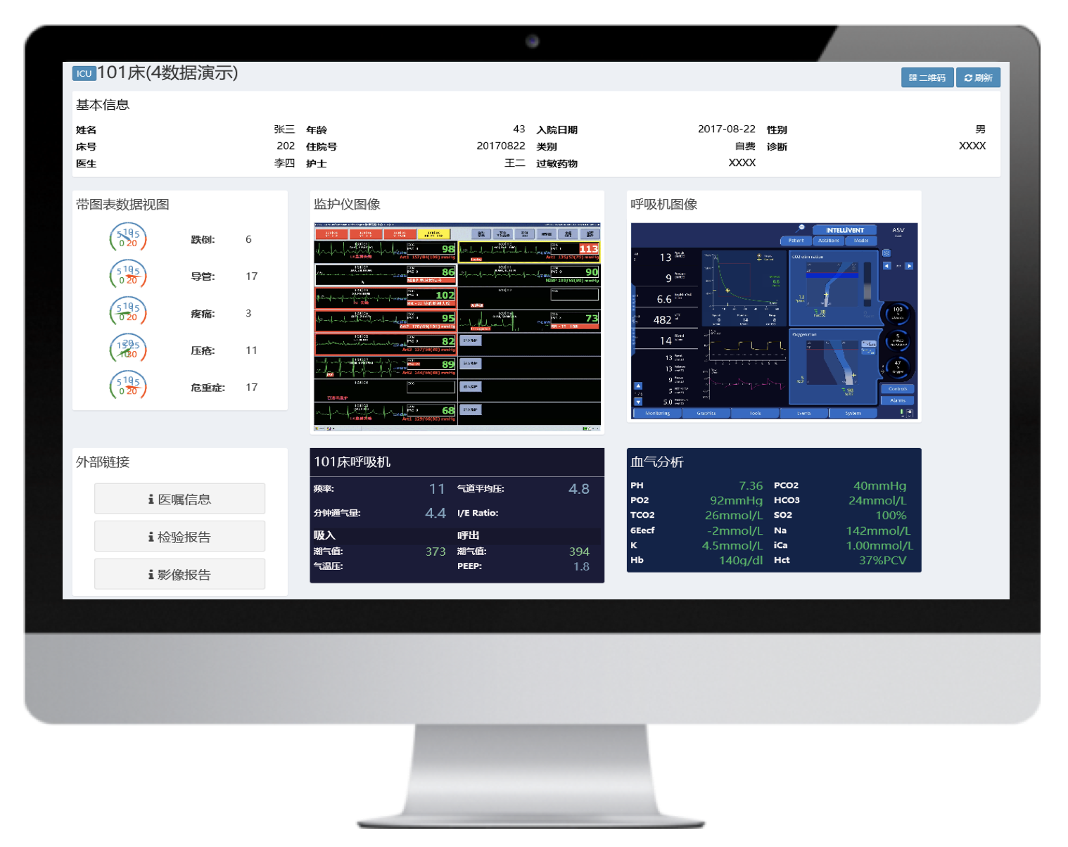 實時呈現(xiàn)病人體征參數(shù)、變化趨勢,診療設備參數(shù),同時接入醫(yī)囑、檢驗結果數(shù)據(jù),一體化呈現(xiàn)存儲和回溯,方便醫(yī)護急救、會診、查房